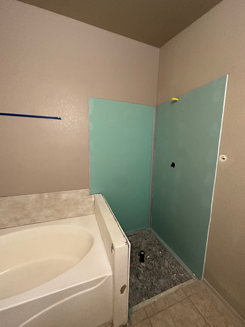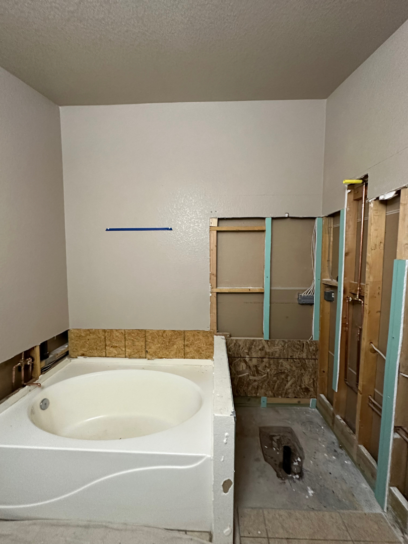 We kicked off the project by removing everything that had overstayed its welcome: the old shower pan, tub surround, glass enclosure, concrete under the shower, and plumbing fixtures. With every bit of debris hauled away, we made sure to use our HEPA dust collection system to keep the rest of the home clean and virtually dust-free during the process.